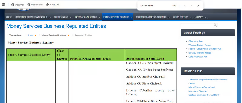Lorvex Astra states on its website that it is registered in Saint Lucia under the name Auxilium FX Ltd. with registration number 2024-00425. The Traderknows investigation confirmed that this entity does exist in the Registry of International Business Companies and International Trusts (IFC) database of Saint Lucia.