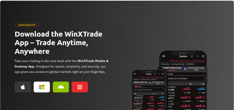 WinXTrade promotes its own mobile and desktop apps with the promise of fast execution and multi-device support.