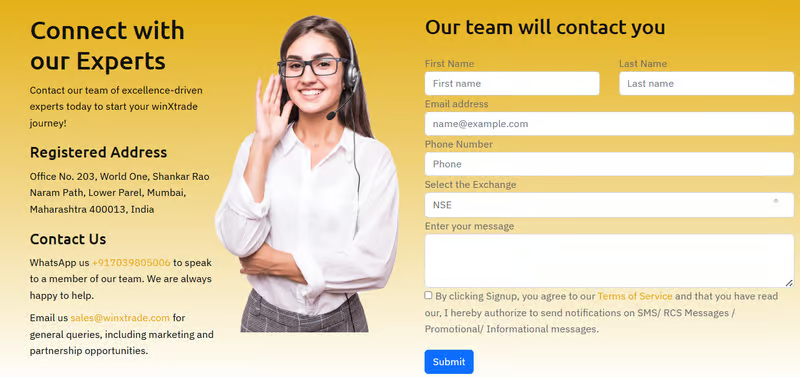 WinXTrade provides contact options such as email, phone, and a website form, but it does not disclose service hours or response guarantees.