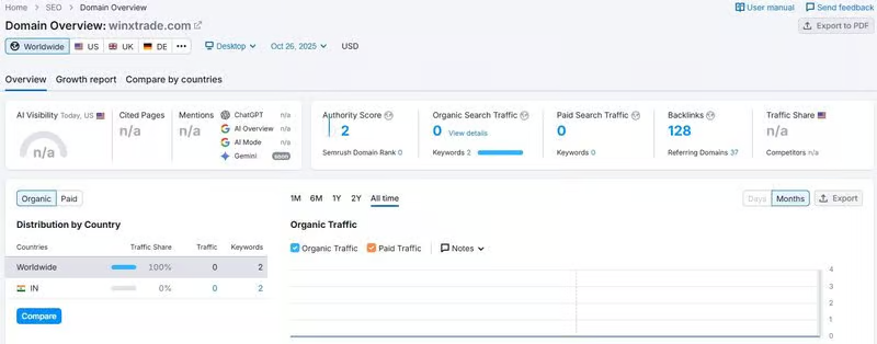 Combined with the newly registered domain and limited user engagement, WinXTrade’s online activity remains minimal and unconvincing.