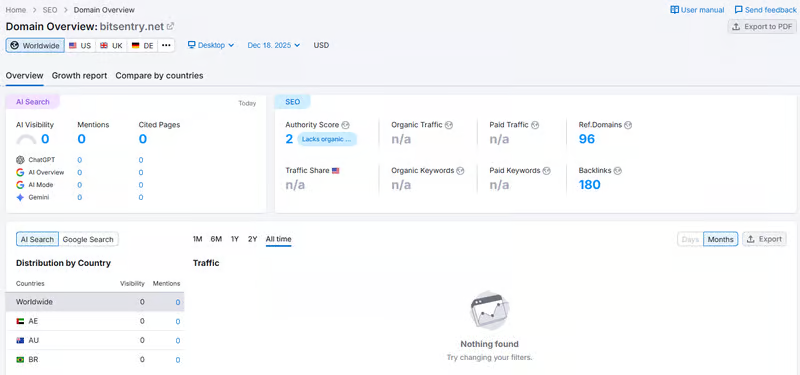 According to SEMrush data, BitSentry’s website currently shows: