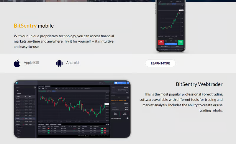 BitSentry states that it offers cryptocurrency trading, including Bitcoin, Ethereum, and Litecoin. Information on other asset classes is not clearly provided.
